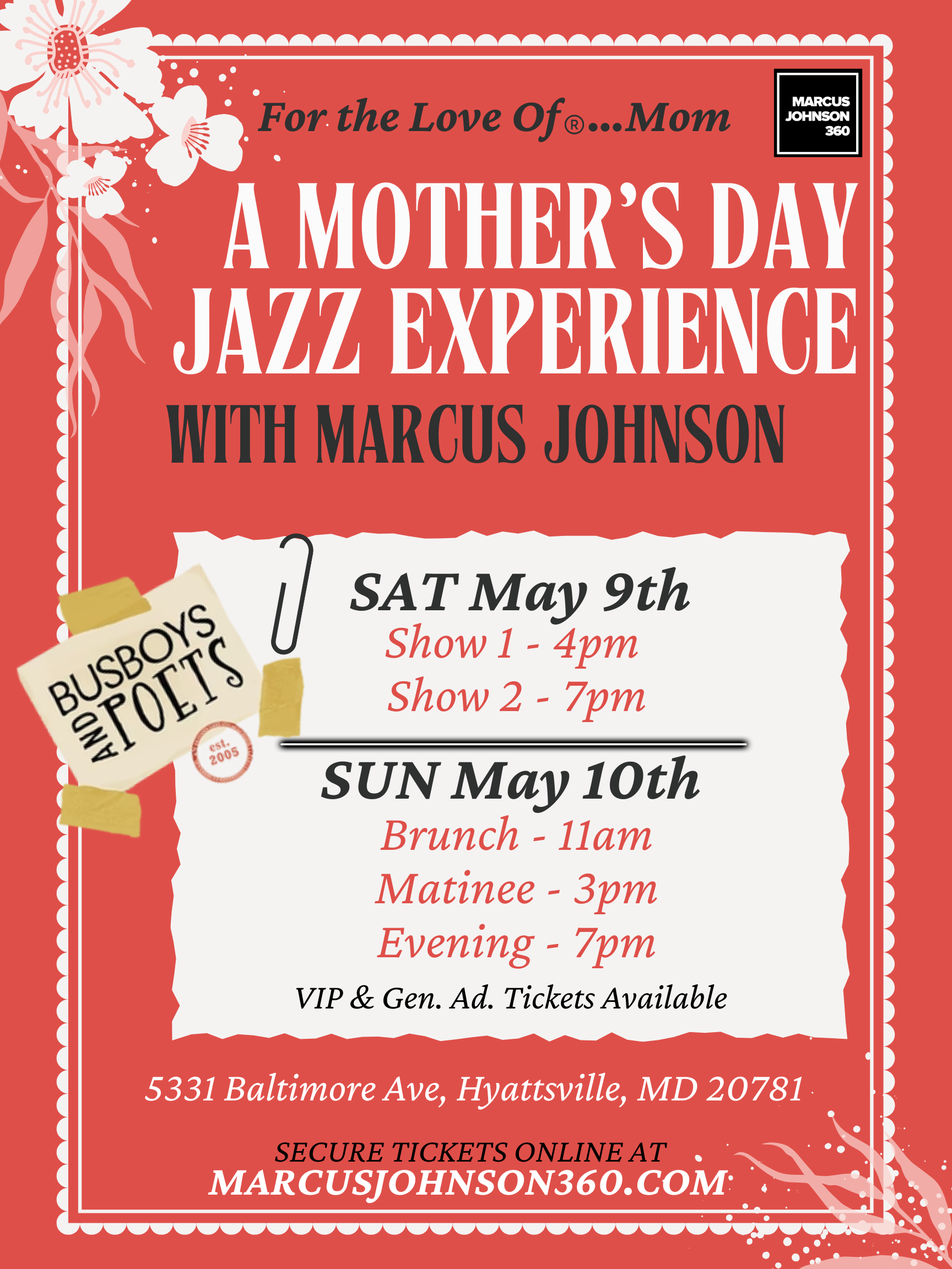 #PreMothersDay #MothersDayWeekend #ForTheLoveOf #FLOExperience #MarcusJohnson #LiveJazz #DMVEvents #BusboysAndPoets #JazzVibes #LuxuryExperience #DateNight